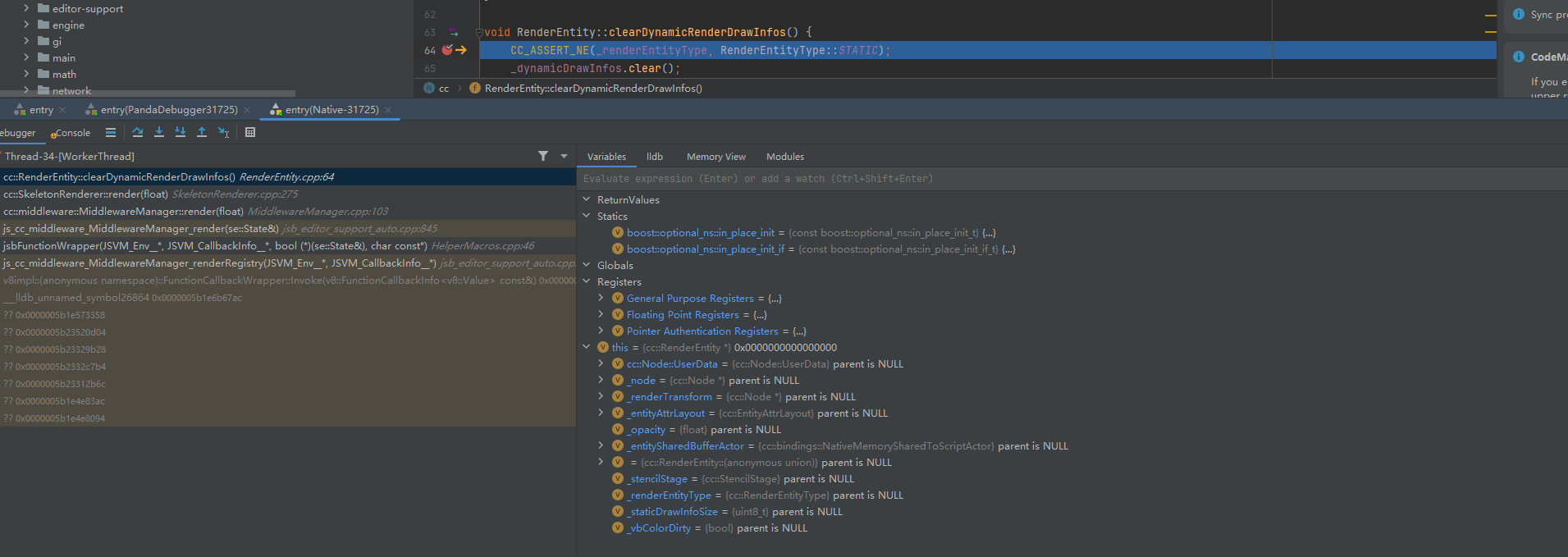 重现方式:预制件里面绑定一个spine动画,spine的node设置为不可见,然后通过加载预制件的时候将node设置为可见来播放spine动画,第一次播放没有问题,第二次播放就会崩溃