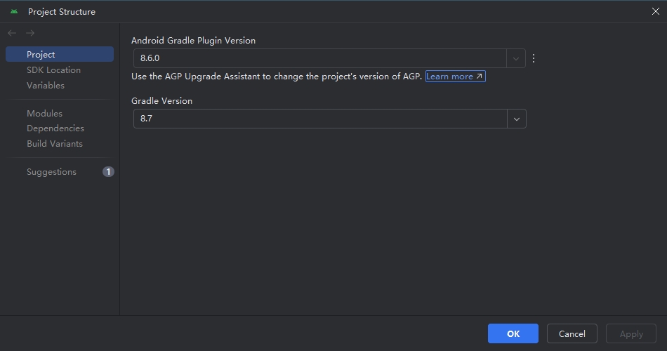 注意: 更新 AGP 和 Gradle 可能需要修改