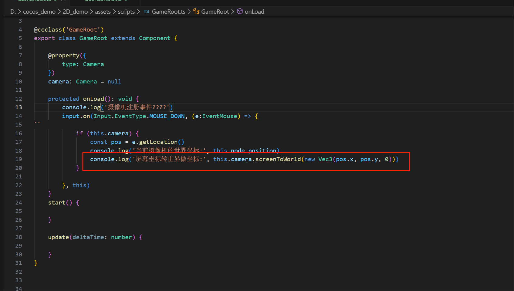 cocos creator v3.8.5版本, 2D游戏, 怎么获取点击屏幕时的世界坐标, 我这样写获取转换后的坐标位置不对呢