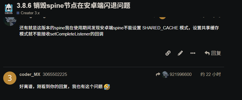 反馈安卓段spine setAnimationCacheMode(sp.Skeleton.AnimationCacheMode.SHARED_CACHE)后setCompleteListener收不到回调