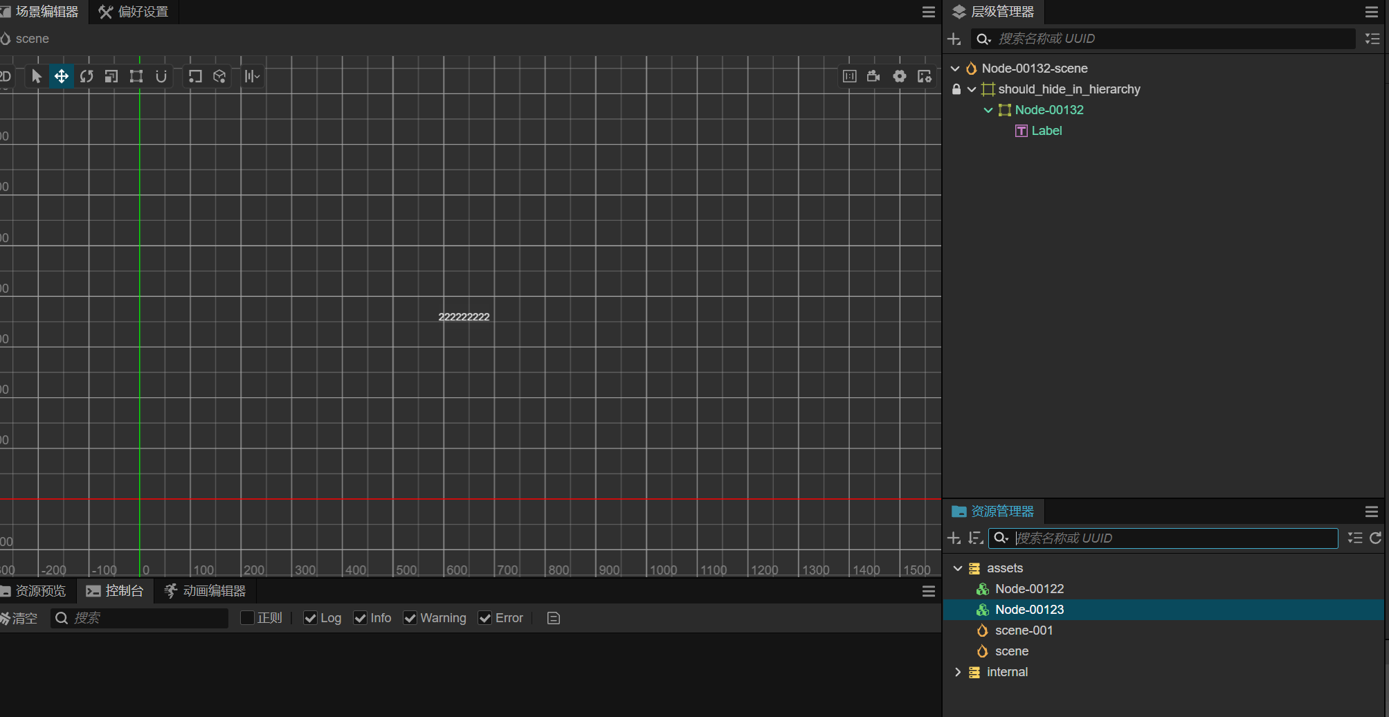 还有另外一个,我在资源管理器中已经删除了Node预制体,但是在这个场景编辑器中还是显示出来~,直到我点击Node预制体他才会刷新界面,不再显示Node节点!重命名Node节点类似,都是需要鼠标移动过去才会同步最新的数据