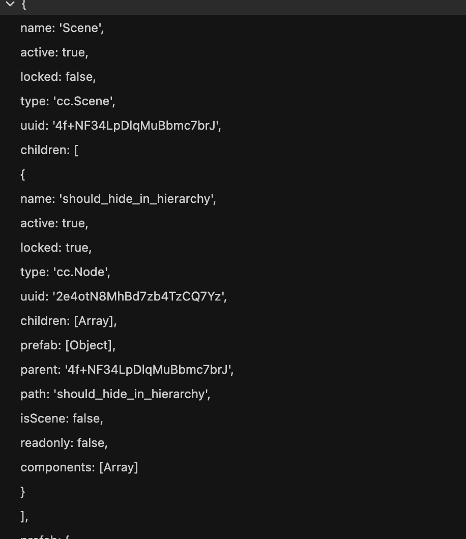 层级管理器就是通过这个消息来拼的,只是说 root 是场景,第二个如果有 2D 组件并且没有 Canvas 的话,就会创建一个为 should_hide_in_hierarchy 的 Canvas 节点(这个可能后续会完善)