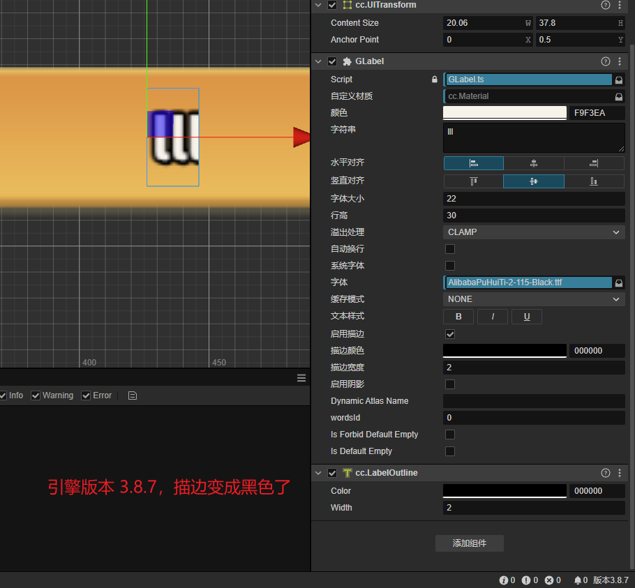 下面的cc.LabelOutline组件弃用了,现在用的是上面的