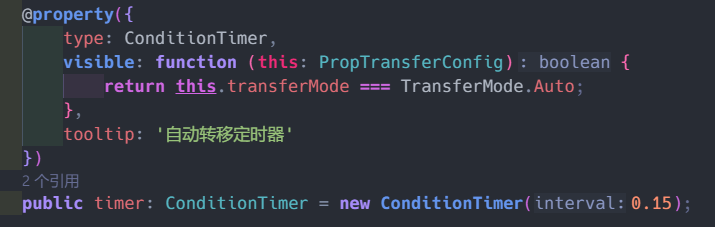 我使用了@property在一个叫"ConditionTimer"的自定义类型变量上,并给它增加了visible属性控制在编辑器上的可见性,每次切换控制它visible的枚举下拉框会让其变量"interval"多增加一行(应该是所有带了@property的变量)。