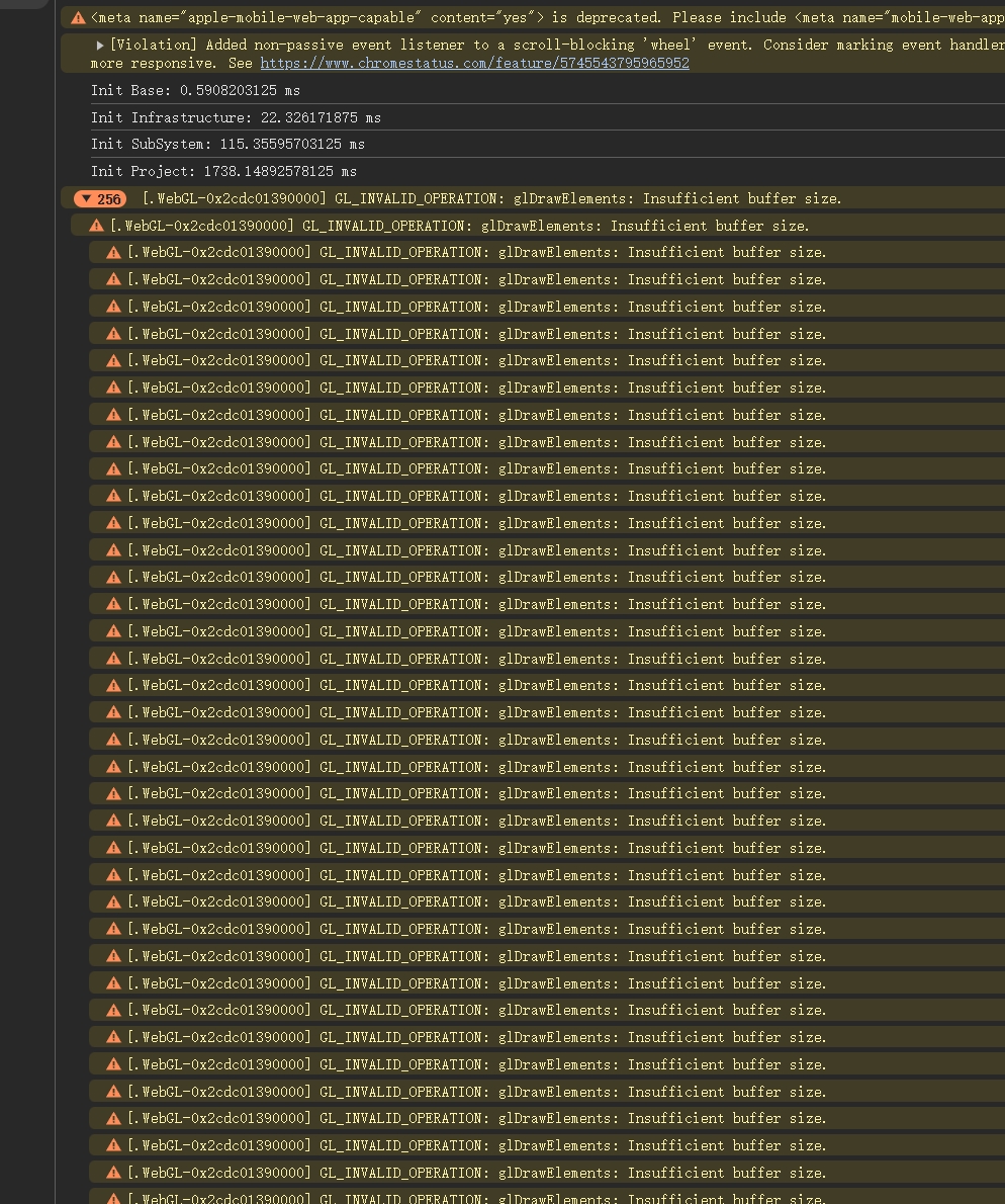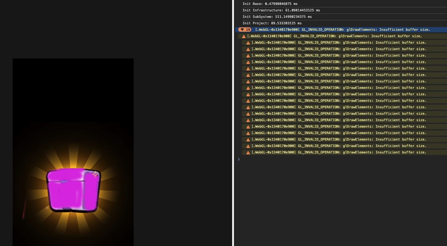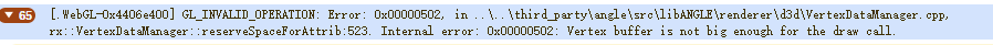 [.WebGL-0x440bc700] GL_INVALID_OPERATION: Error: 0x00000502, in …\third_party\angle\src\libANGLE\renderer\d3d\VertexDataManager.cpp, rx::VertexDataManager::reserveSpaceForAttrib:523. Internal error: 0x00000502: Vertex buffer is not big enough for the draw call.