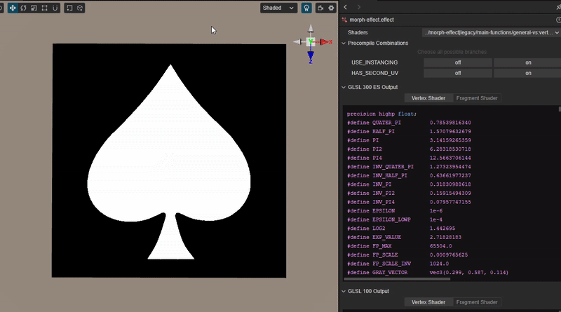 实现游戏UI中常见的变形动画效果模板,实现从形状A->B的中间态动画的Morph动画过渡效果。