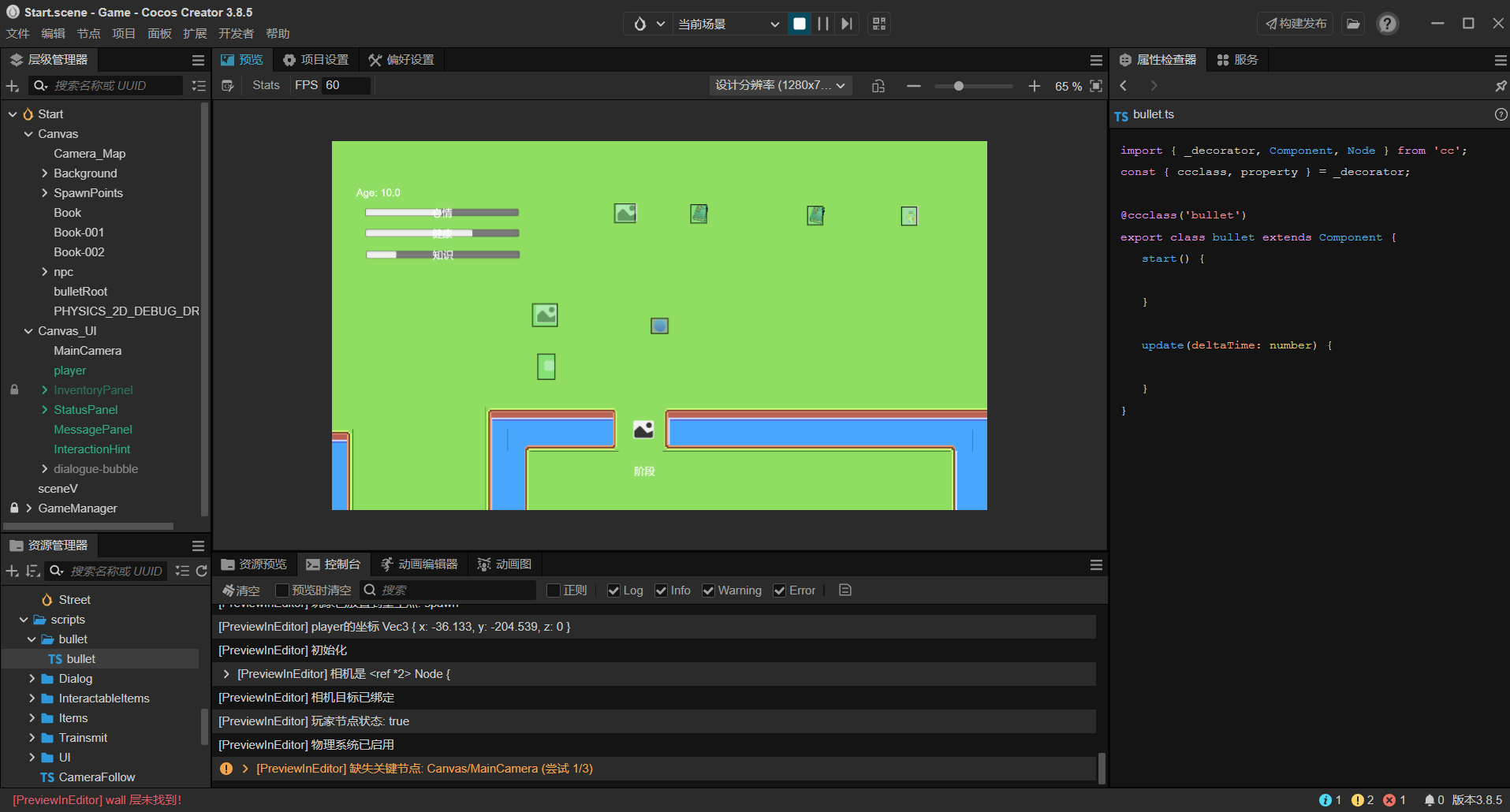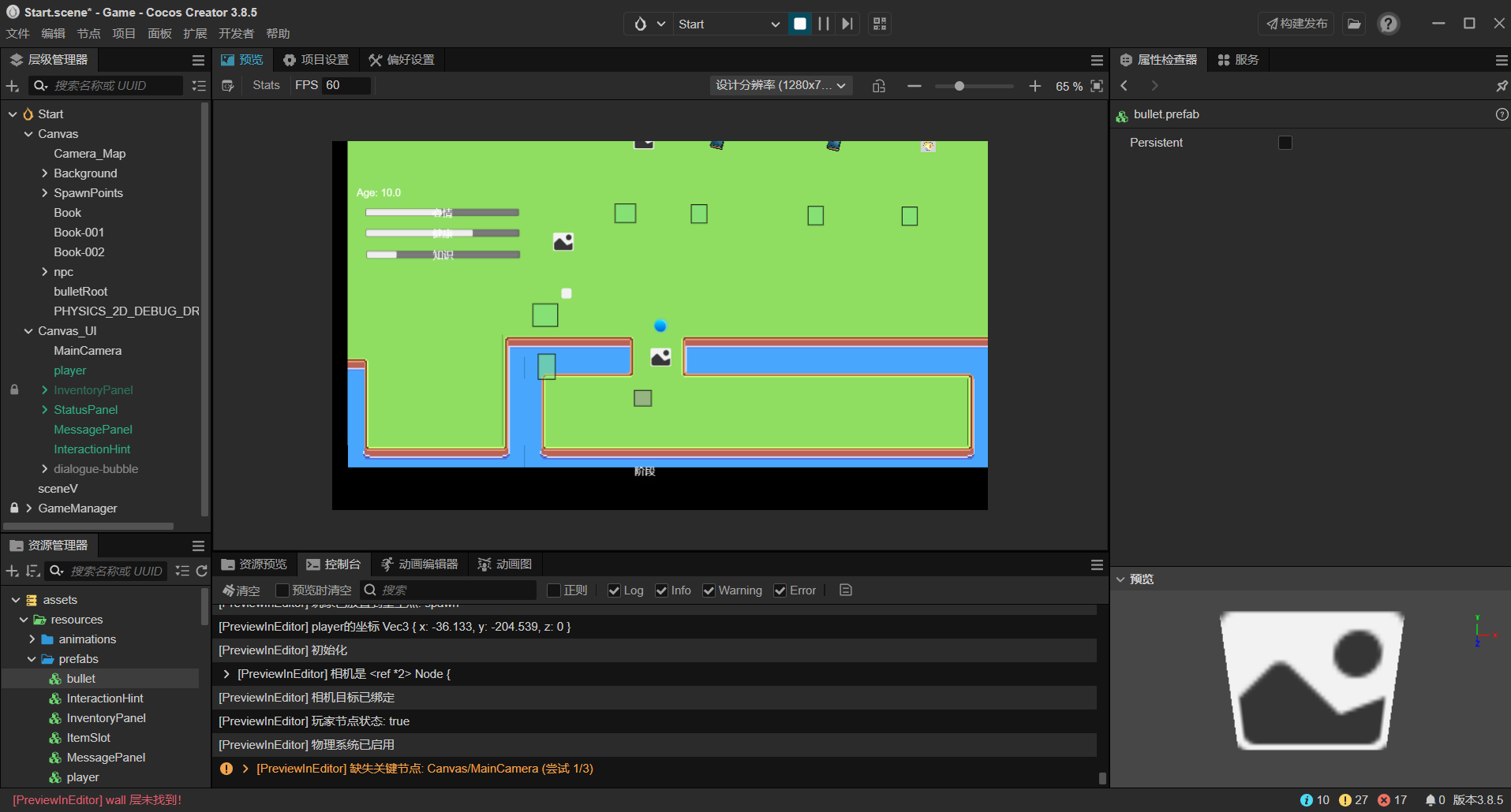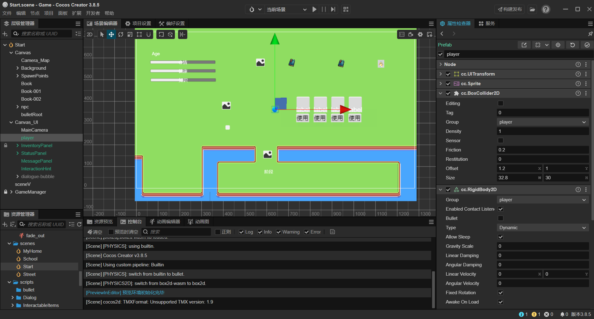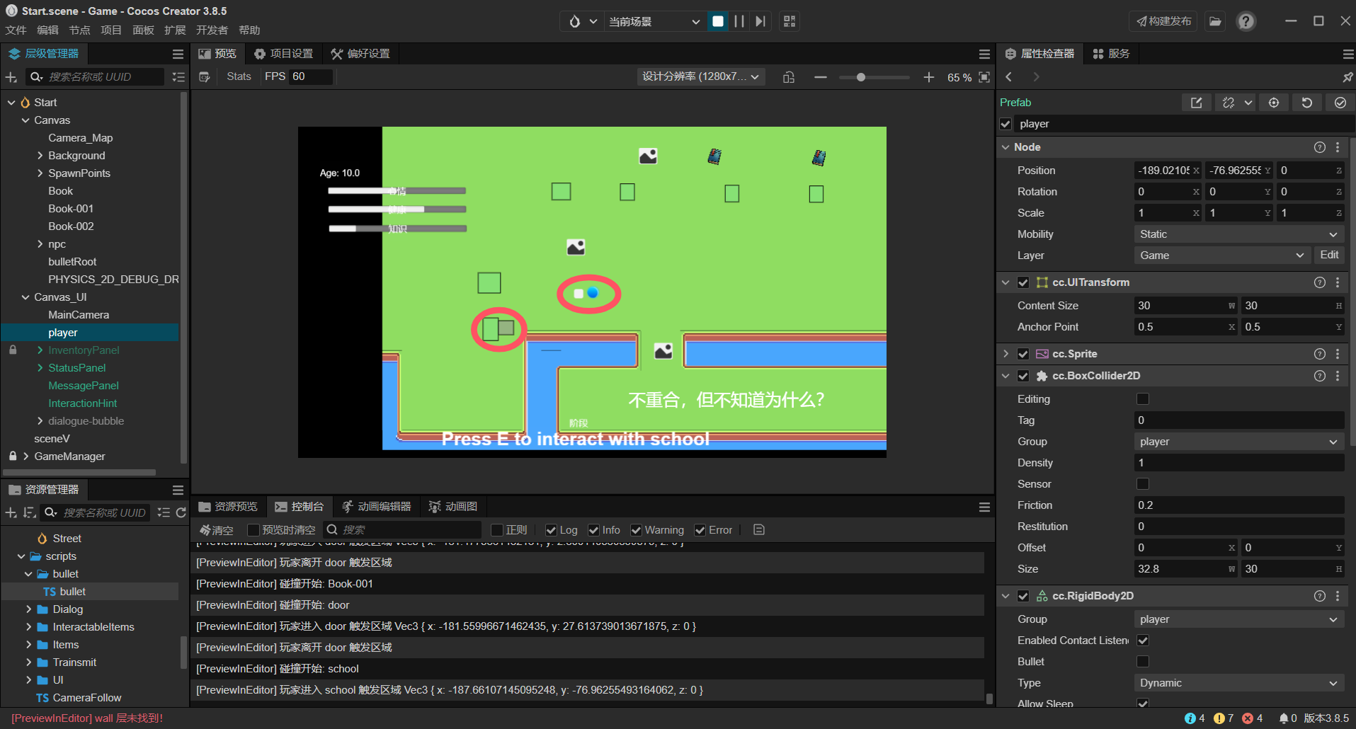 就是如图,框框是实际物理碰撞体,但在子弹生成的时候是在实际的坐标,不在显示的位置。有没有大佬帮忙看看