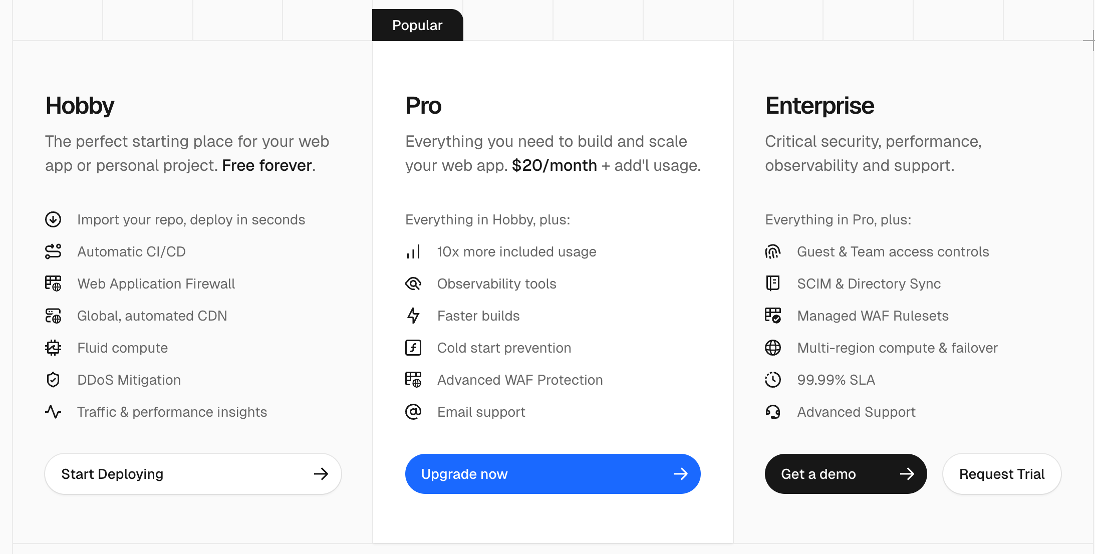 Vercel已经在国外很火了,最大的特点是免费,方便与稳定,可以负责部署,承载静态资源与前端网站(最近后端也支持了,试了试效果还不错)。说到方便,它简直把Github包围了,一键式部署github代码仓库到Vercel,简直不要太方便。而且commit会自动触发部署,将CICD做到了DNA中。总的来说,太方便了。