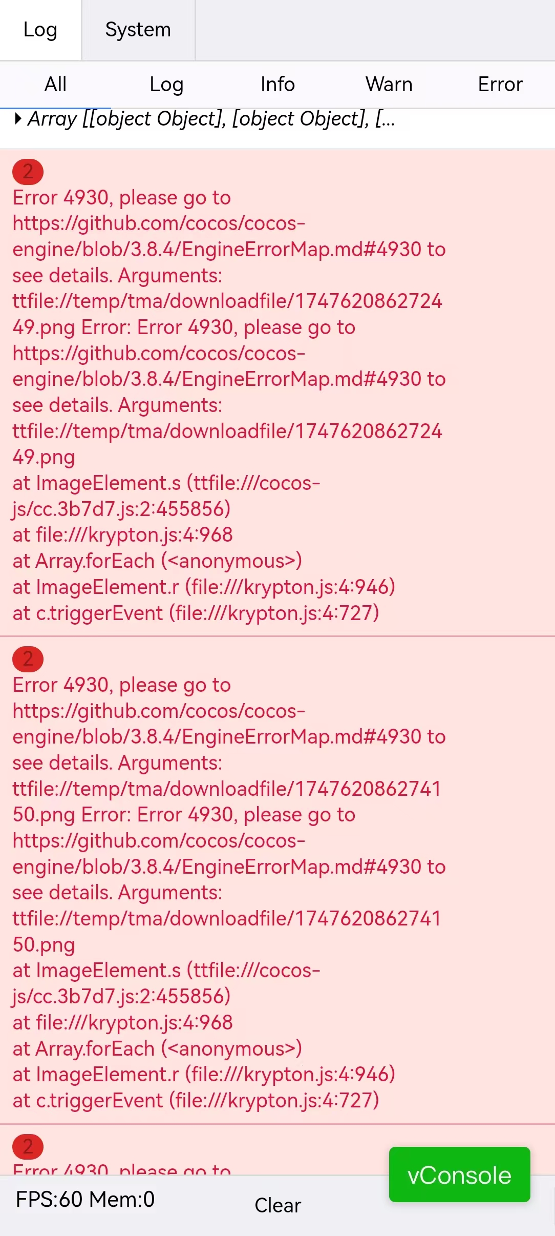 求助!!!,抖音小游戏 在列表循环 创建预制体的脚本中加载远程图片 只有鸿蒙报错,安卓 ios正常,鸿蒙也只有部分远程图片 报这个4930错误