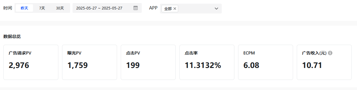 ecpm和广告次数都挺低的,可能游戏比较低幼?
