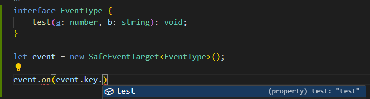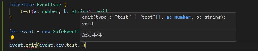 - 类型安全 :编译器会检查事件名是否存在,以及传递的参数是否与事件定义的参数类型匹配。