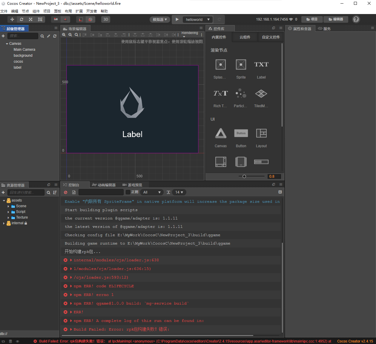 完全根据官方的发布vivo小游戏文档操作,打包就出错了,卡了好几天了,用官服模板发布vivo小游戏都是失败的,求大神指教。