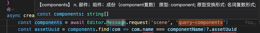 在Editor的类型提示文件里标注的await Editor.Message.request(‘scene’, ‘query-components’)返回的是string[] 但是实际上这个api返回的应该是这样的类型componentInfo[]