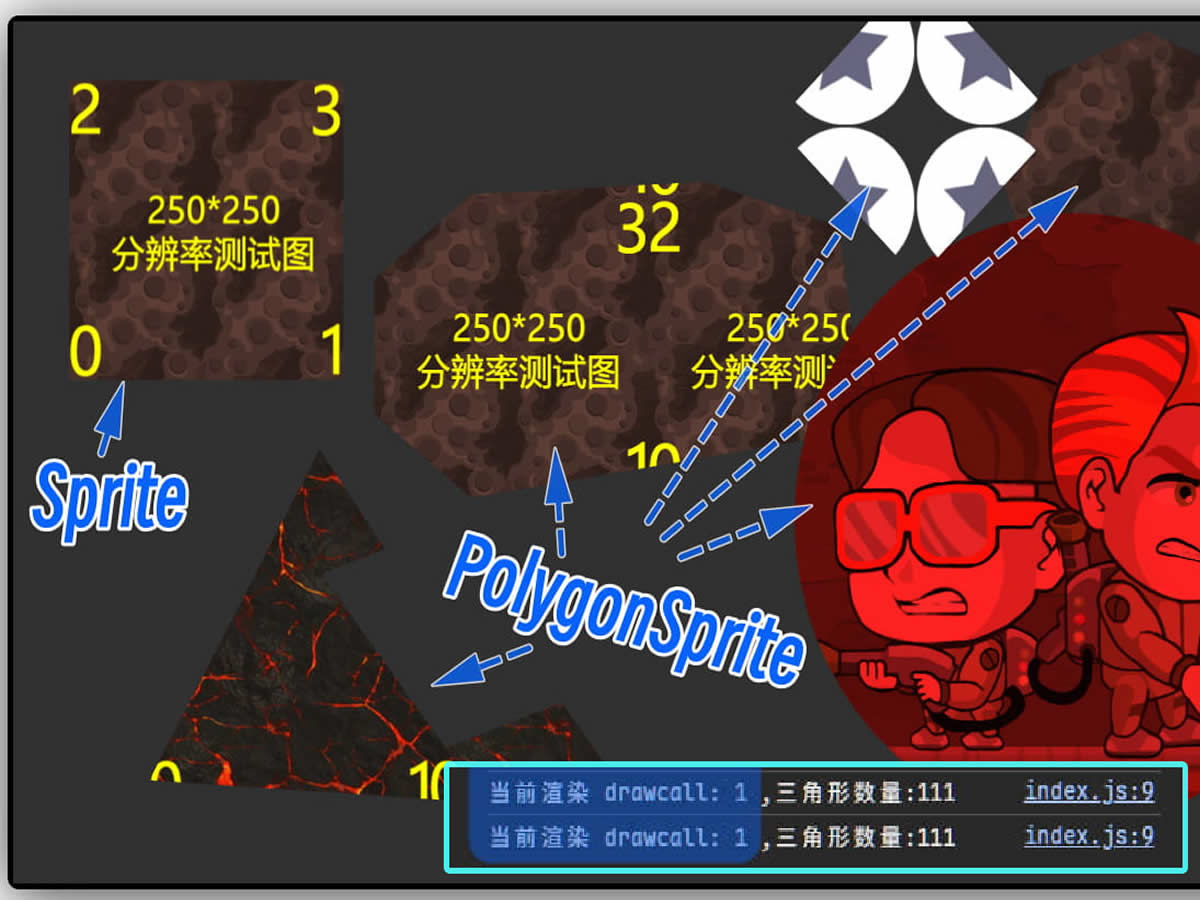 顺手为Sprite组件实现了一个多边形模式,可以动态合图,不打断合批.
