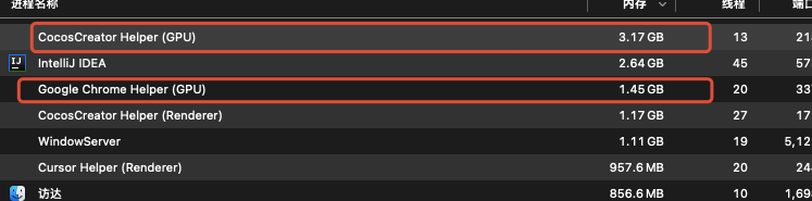 用creator跑CocosCreator Helper(GPU) 一直增高