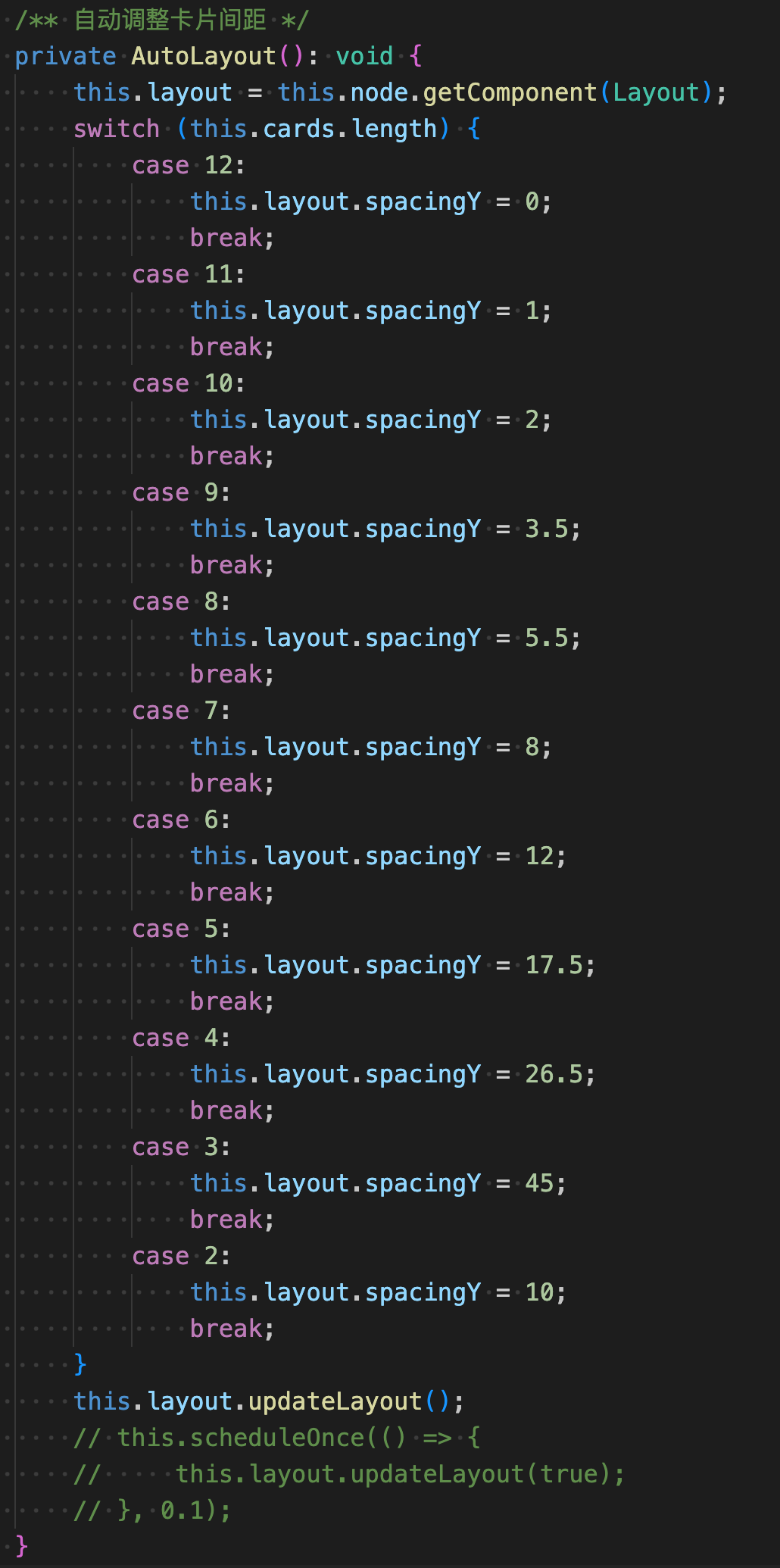另外根据卡牌数量设置布局间隔 建议还是搞个曲线公式直接设置吧 switch太那啥了