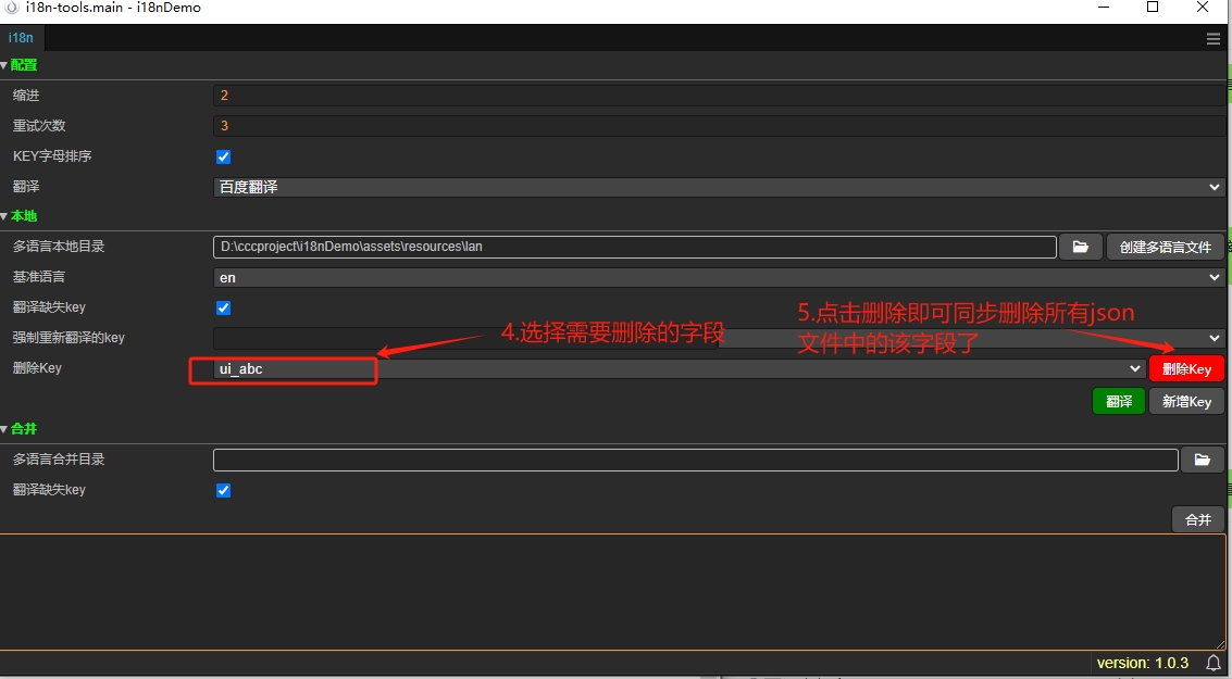3.有时候某些key的文本不需要可以直接在插件面板删除相应的key即可,多个key都要删除的都点一下就行,会自动把所有语种种的相关字段都删除的