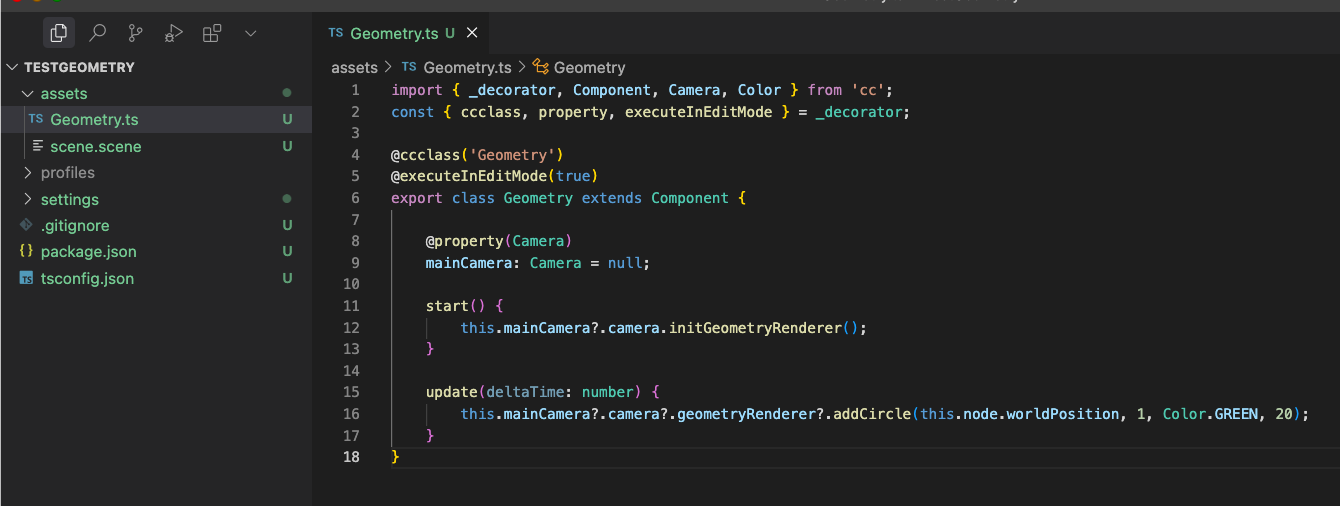 代码是文档中的copy过的。在场景中没有渲染出来,运行之后才有