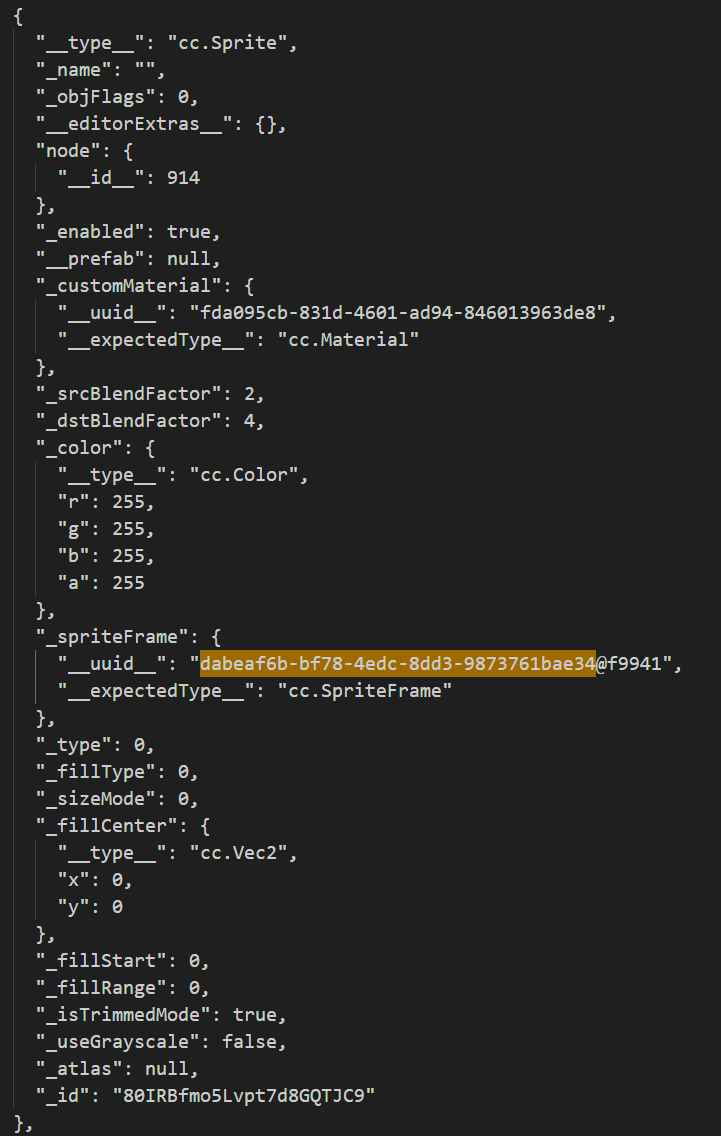 之后我通过UUID去项目.scene文件中搜索,看到一个name为空,node id 为914的几点信息: