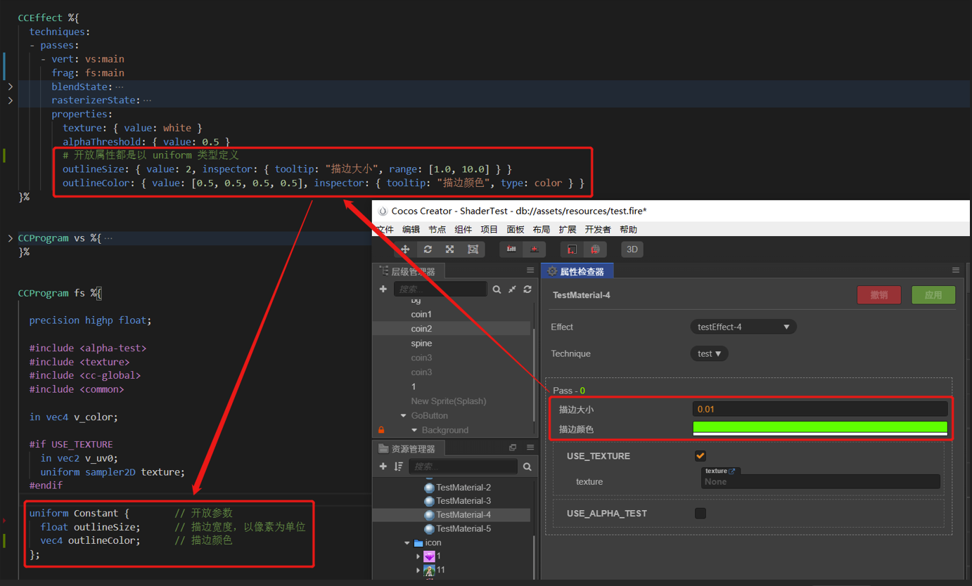 outlineColor: { value: [0.5, 0.5, 0.5, 0.5], inspector: { tooltip: "描边颜色", type: color } }