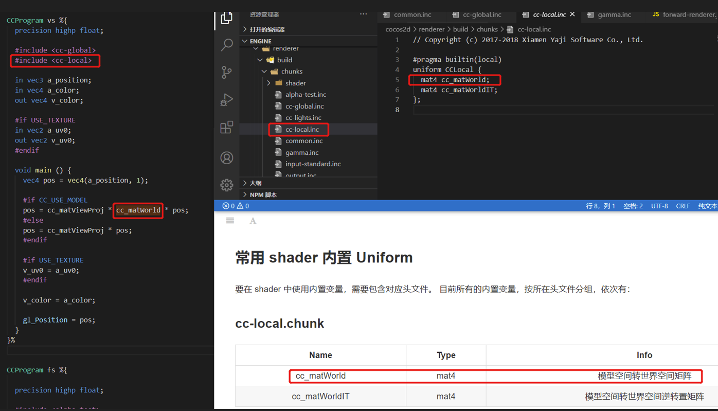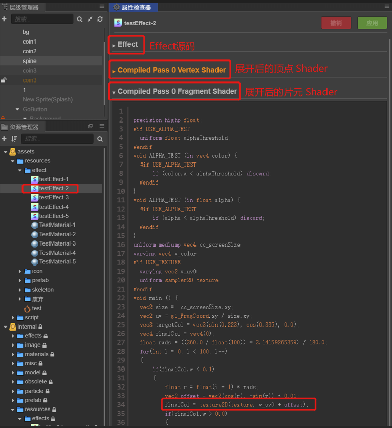 本文基于CocosCreator2.x版本,主要以讲解 CocosCreator Shader Effect 知识为主,相关涉及到的知识点包括:WebGL、GLSL ES、YAML、ShaderToy 等等;由于涉及到的知识点非常多,所以只会介绍编写 Creator Effect 时所必须了解的内容,其它相关的知识只做简单说明不会展开太多,需要了解更详细的相关资料请点击参考部分链接;