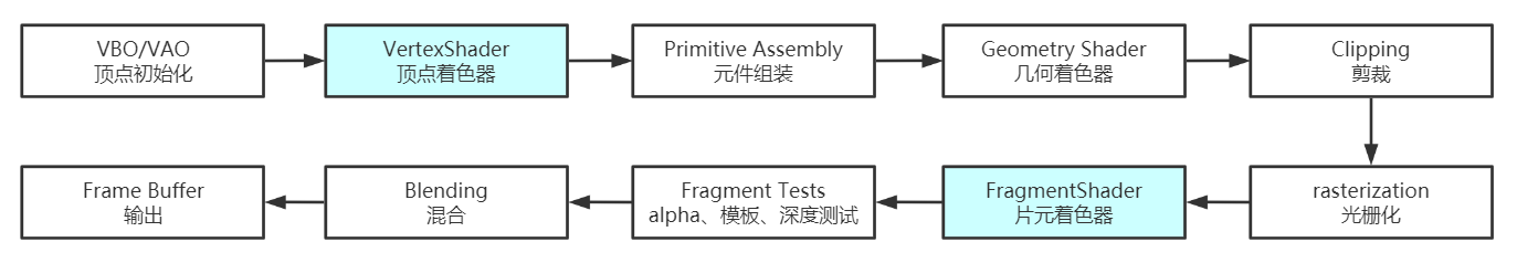 - 顶点着色器:处理渲染过程中顶点的特性,计算顶点的位置和大小;