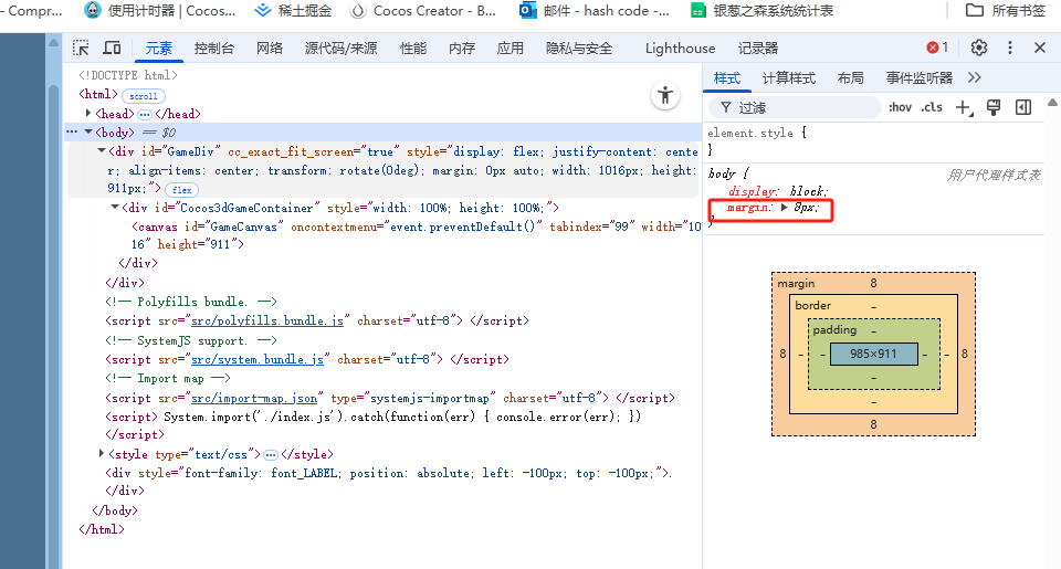 其实电脑端也有问题,就是这个body的margin有问题 看起来是漏掉了什么css文件 或者是没加载到