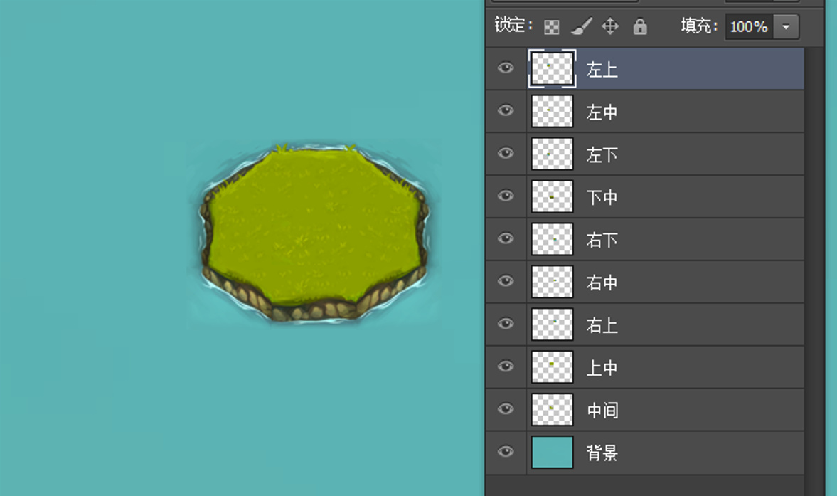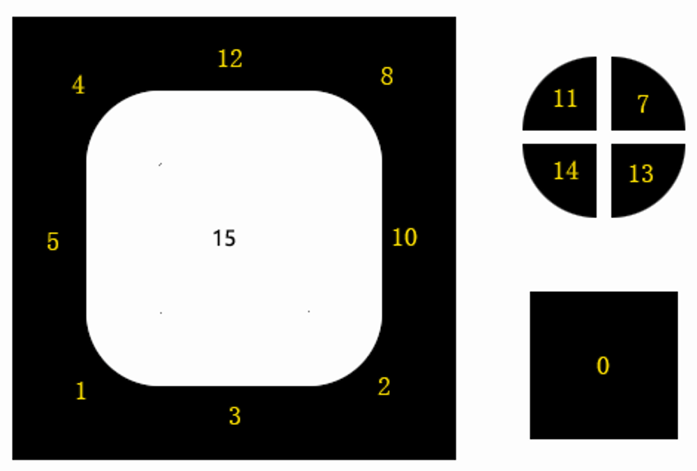 迷雾(智能地表)拼图的图块顺序设置,可以看出来,和上文地表块中土地部分对应下图地表块是镂空的(自已画的测试图,没有做渐变):