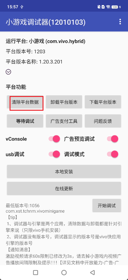 打包vivo游戏安装成功后,在小游戏调试器上清理数据后,开始调试,显示加载出问题啦