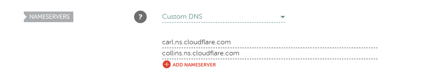 在你的域名服务商网站设置域名服务器(Nameservers)为 cloudflare 提供的地址
