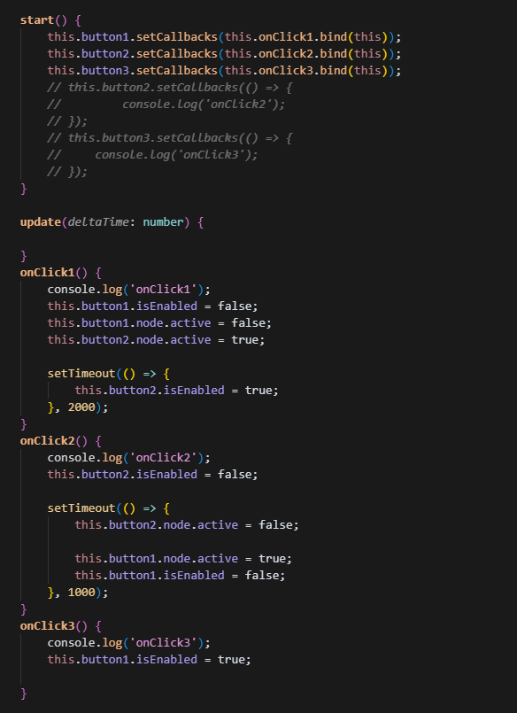 点击按钮3:按钮1设置为可点击