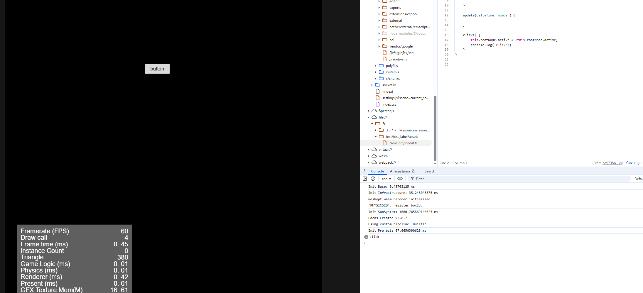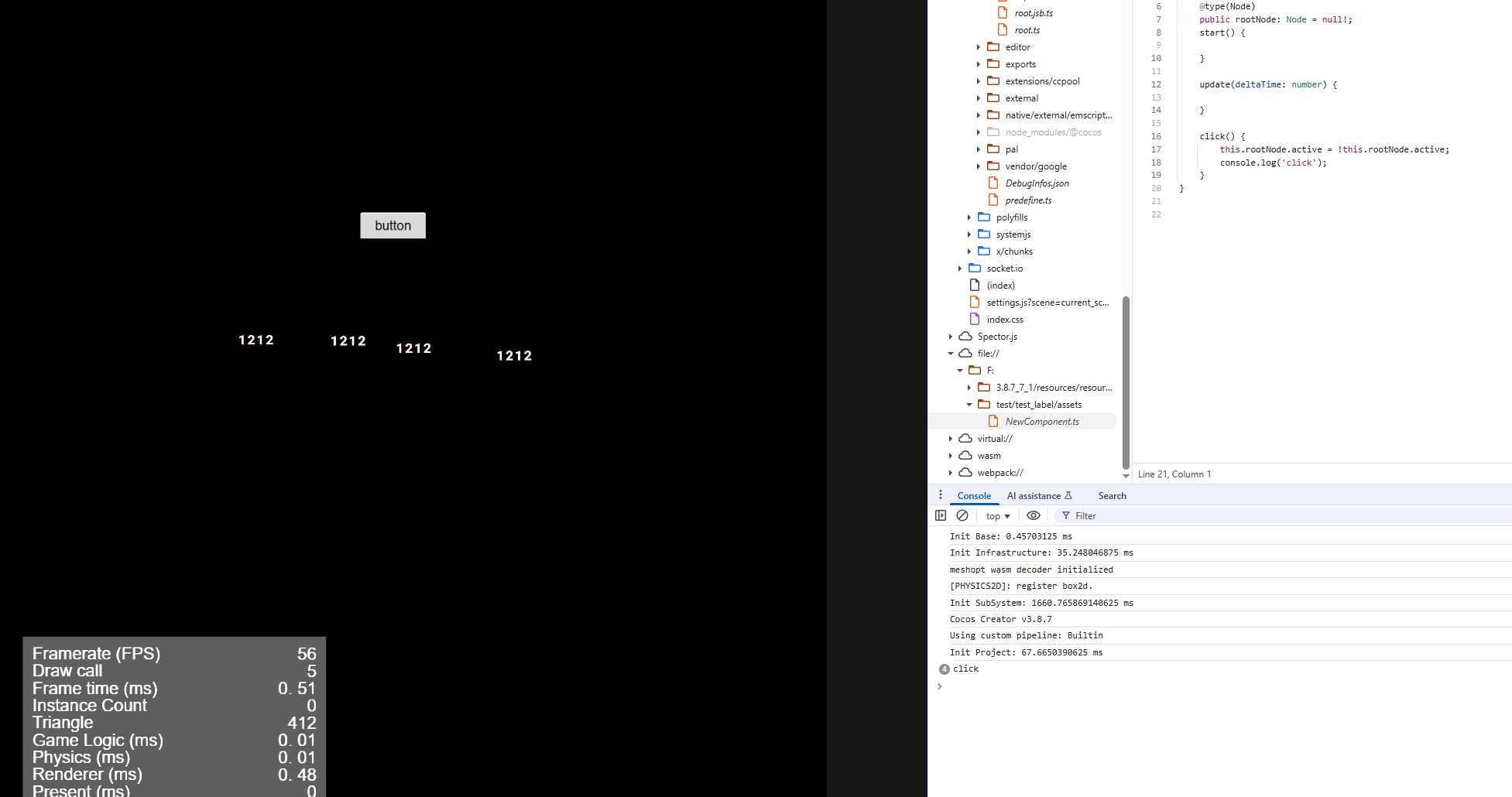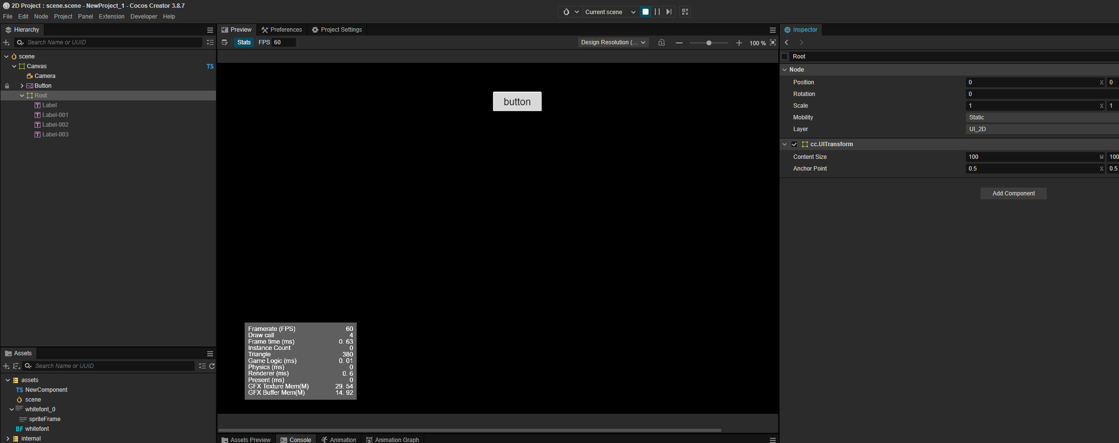 我是直接在editor里面隐藏节点的,没用按钮(一开始弄按钮是想写个脚本去隐藏显示,但是想了想还是直接在eidtor去选择Root就可以隐藏和显示了)