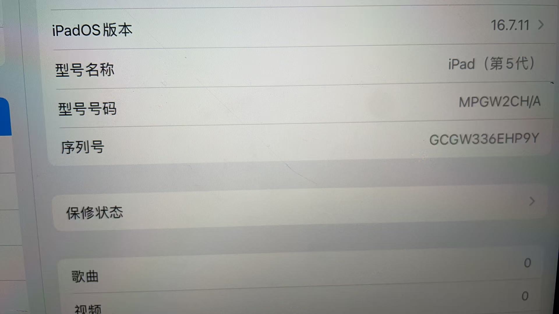 用户iPad系统版本是16.7.11