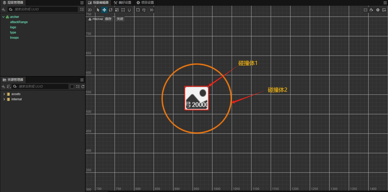 外面已经是碰撞体了 然后出现的情况就是两个node【碰撞体2】碰撞后,不能再继续靠近