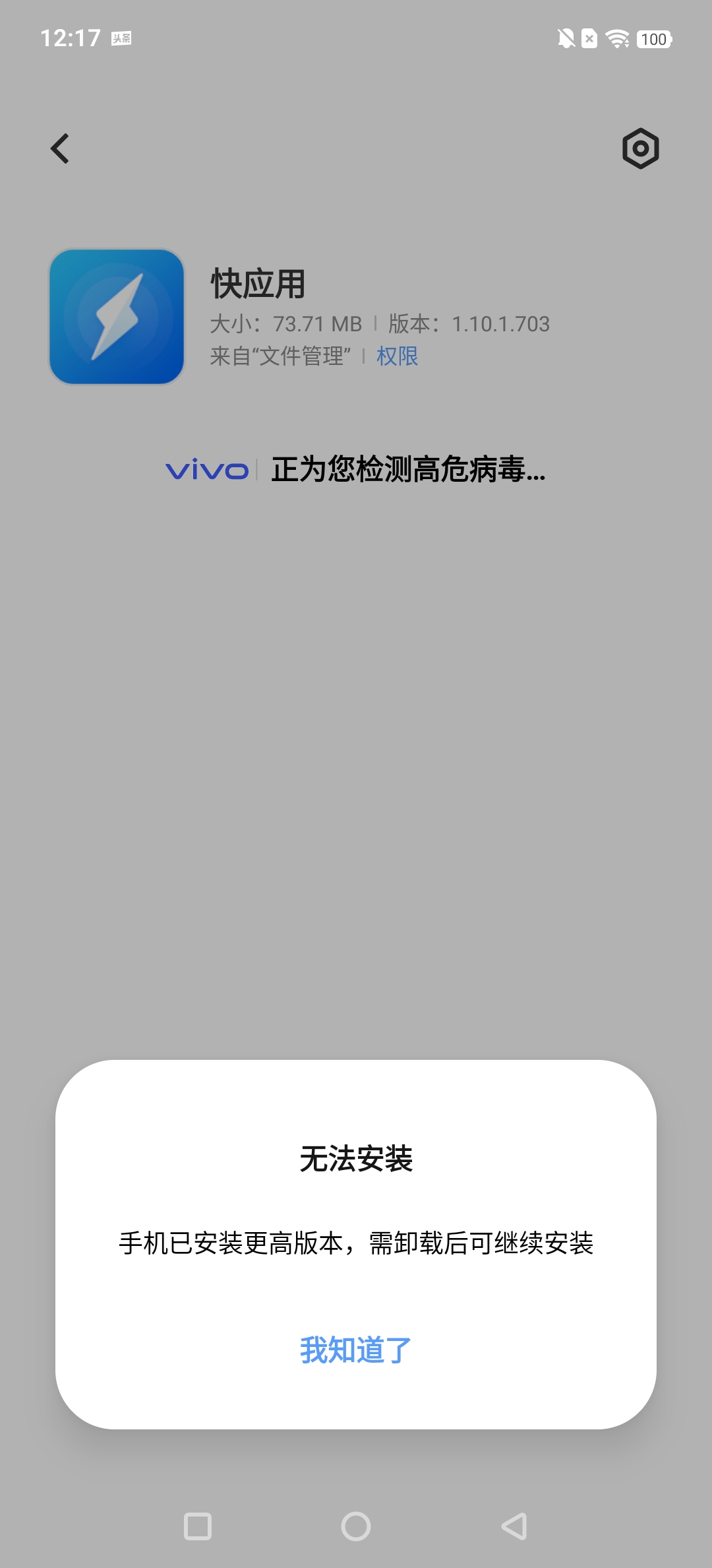 说卸载失败,然后进入设置里面的应用管理打开快应用框架,卸载是灰色的