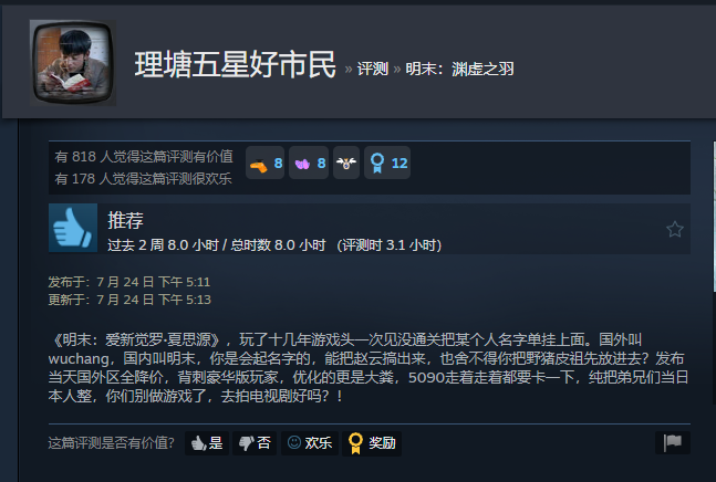 无论是哪个,都是有人不想国产单机堀起, 至于黑手是谁, 只能説谁得益谁嫌拟最大