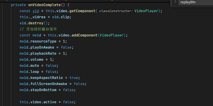 现在是通过播放完成后,删除当前的videoPlayer组件,重新放一个组件,然后把之前的资源赋值给新的,就可以了,