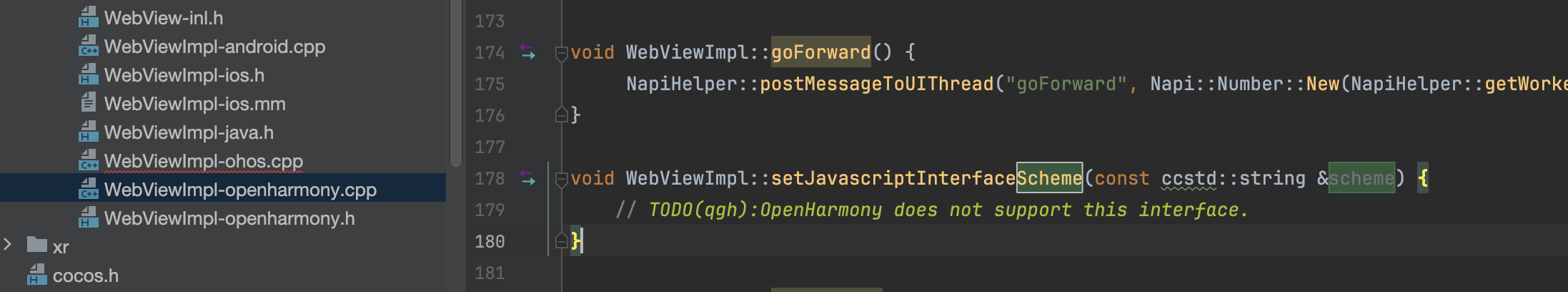 重现方式:现在游戏嵌入webview,当webview 需要通知游戏,但是发现setJavascriptInterfaceScheme方法,未实现,
