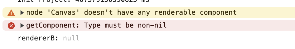 此时浏览器会报错 getComponent: Type must be non-nil,且 MeshRenderer 获取为 null(导致无法调用 MeshRenderer 的 setInstancedAttribute 方法):