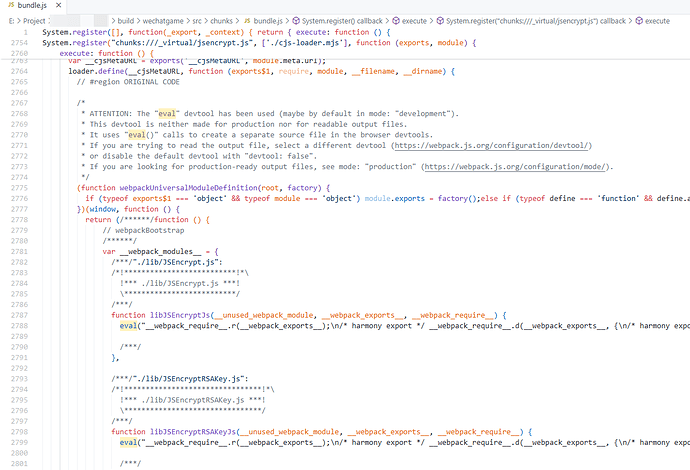 使用cocos creator构建微信小程序之后,构建目录下面的src/chunks/bundle.js里面有eval,但是微信小程序不知道导致报错,请问这个怎么解决