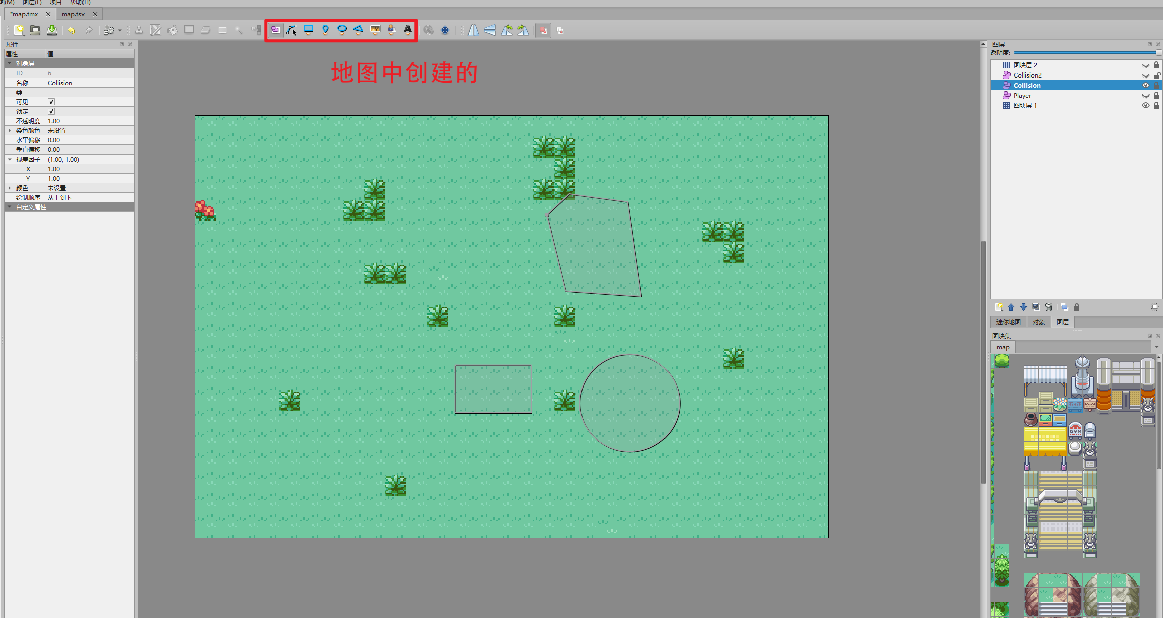 在地图和单独图块中创建的碰撞体该怎么获取到?