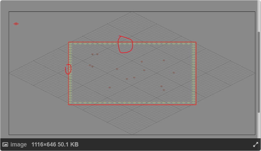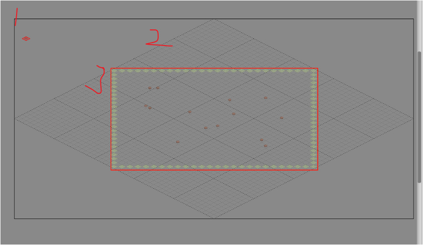 如题,上面是我用tiled做的一个45度地图,然后中间红框的部分是我要在cocos creater显示的部分,这一部分的宽高都是要超过父节点的宽高的,为的是玩家可以拖动一段距离。如果我想限制玩家只能拖动不超过红框的边界,我应该如何去做呢?