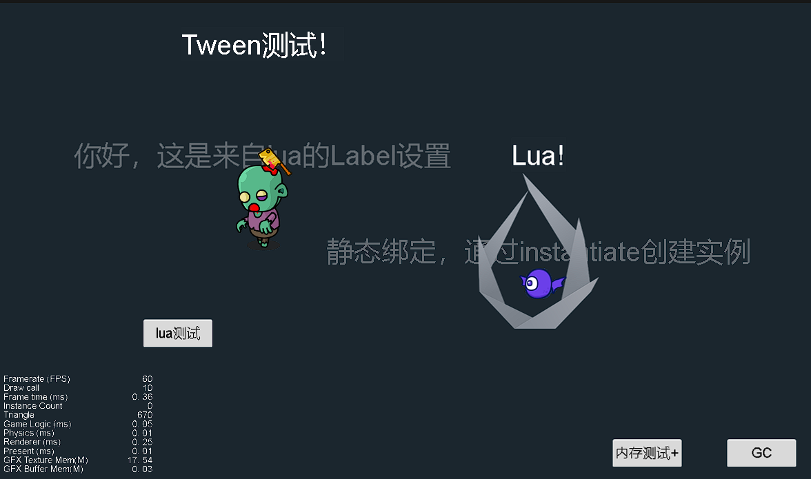 安装注意事项:lua虚拟机的glue.wasm文件放在了根目录的luaengine目录下,请将其部署在自己的服务器上,如果没有用nodejs部署一个本地服务器即可,在代码中LuaEngineMgr.ts中第26行为远程加载逻辑,请根据代码修正为自己服务器以及该文件正确地址。操作点击lua测试按钮即可远程加载该wasm虚拟机并执行相应逻辑。如果没有部署或者网络有问题则会报错。
