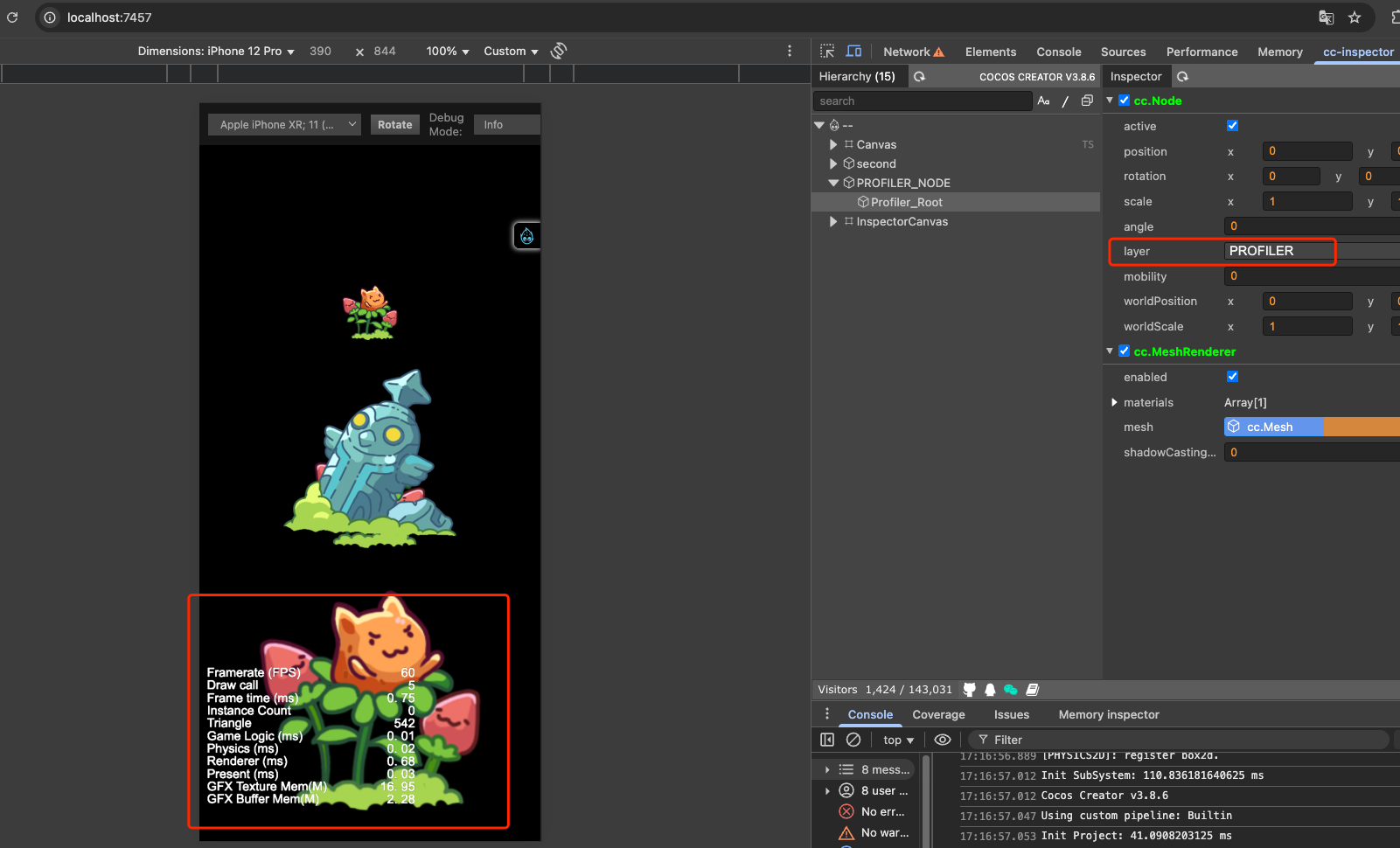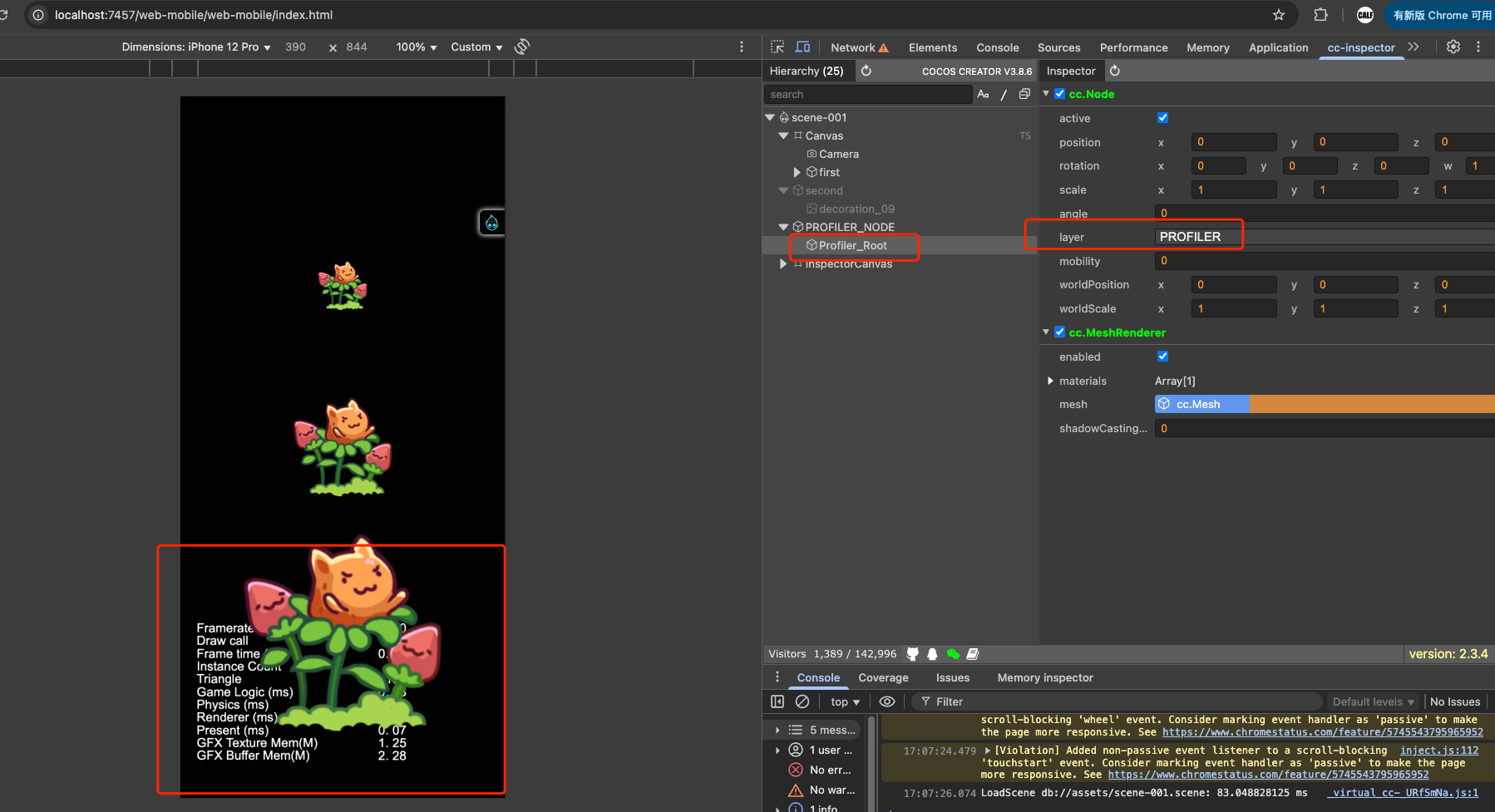 重现方式:一个新建的helloworld 2d工程,场景关联一个新脚本调用profiler.showStats();在浏览器预览、模拟器预览都是正常的,打包为web手机版本,或者Apk版本,profiler的层级就显示错误了