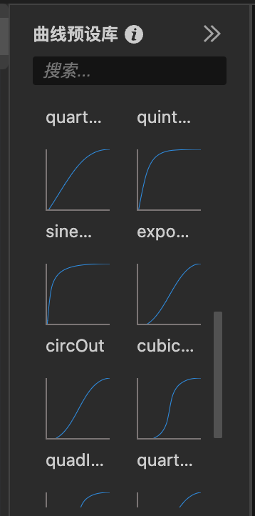 优化建议:动画编辑器中的曲线,ease 名称要补全一下。一般都是先找名字,再看下动画,名字这样,很考验记忆力: