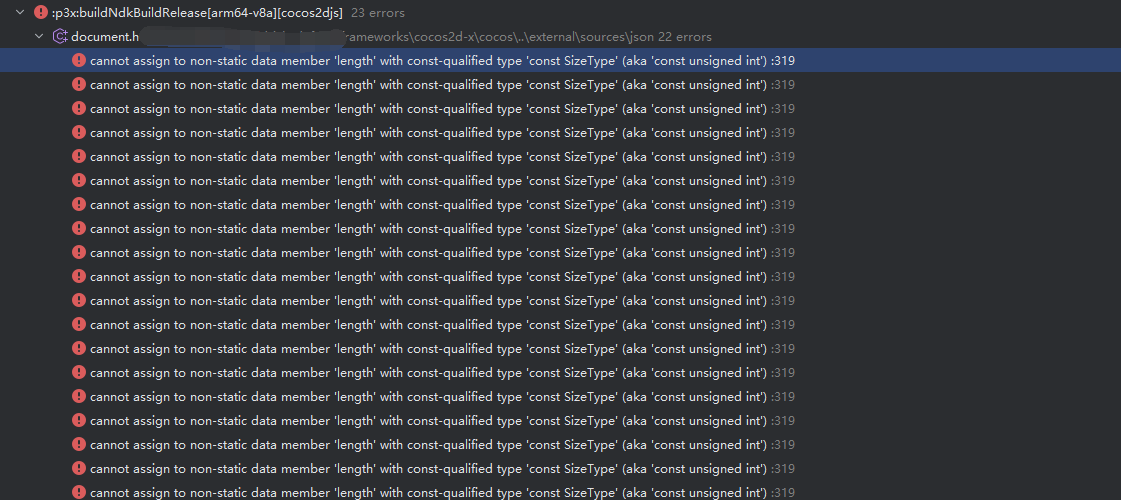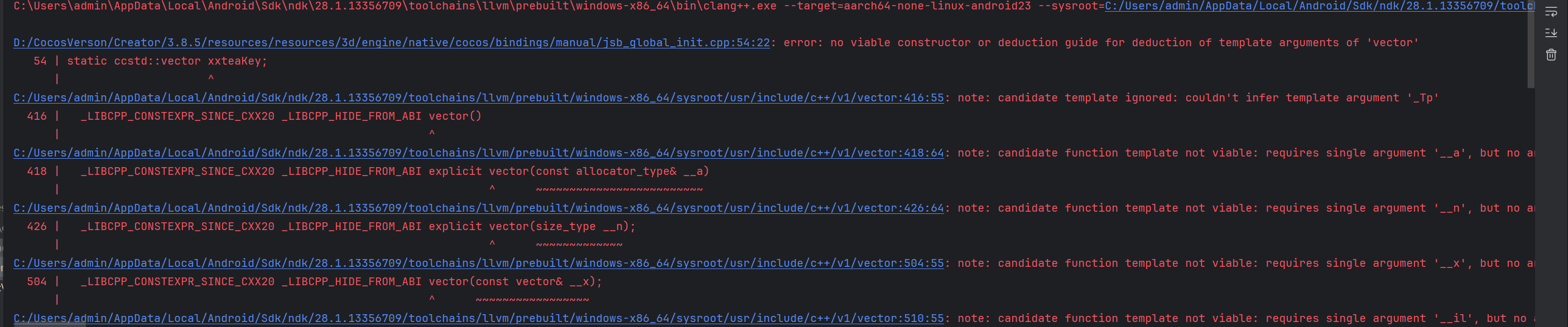 。能看看我这个吗,后面我运行时发现还出现了[ERROR] file D:/hlz/cocosEdits/Creator/3.8.3/resources/resources/3d/engine-custom/native/cocos/application/CocosApplication.cpp: line 173 E 17:00:51 [ERROR]: [SE_ERROR] (D:/hlz/cocosEdits/Creator/3.8.3/resources/resources/3d/engine-custom/native/cocos/bindings/jswrapper/v8/Object.cpp, 755): Invoking function (0xb40000720a804290) failed 时间戳来看他们都是在同1s发生的 ,这是为什么呢。我使用的是备用方案的NDK版本为最新的29.0.14206865
