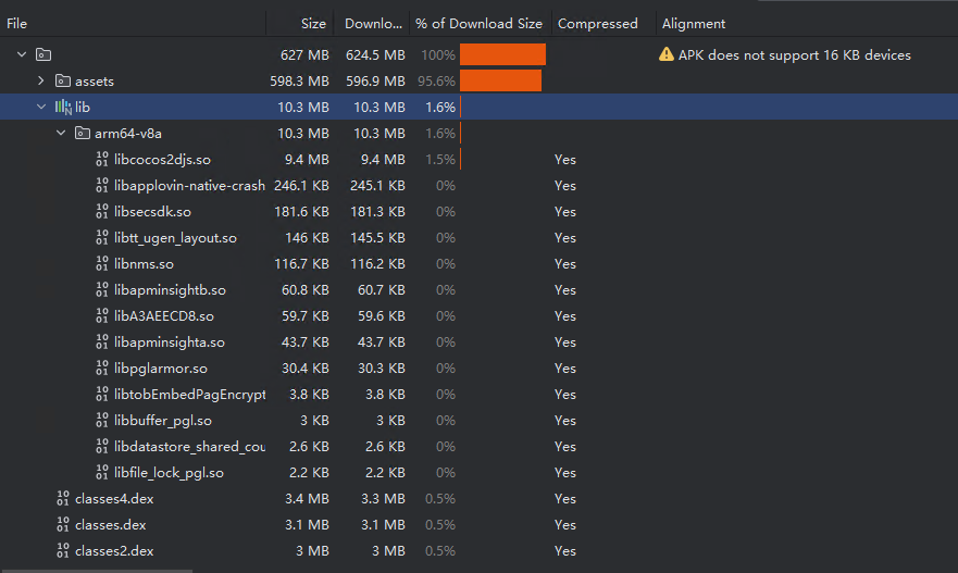 你好,我想问一下我3.8.5的项目把版本切换成了3.8.8后重新打包生成apk并没有产生任何的报错和警告,但是打包出来的包并没有适配16kb怎么回事