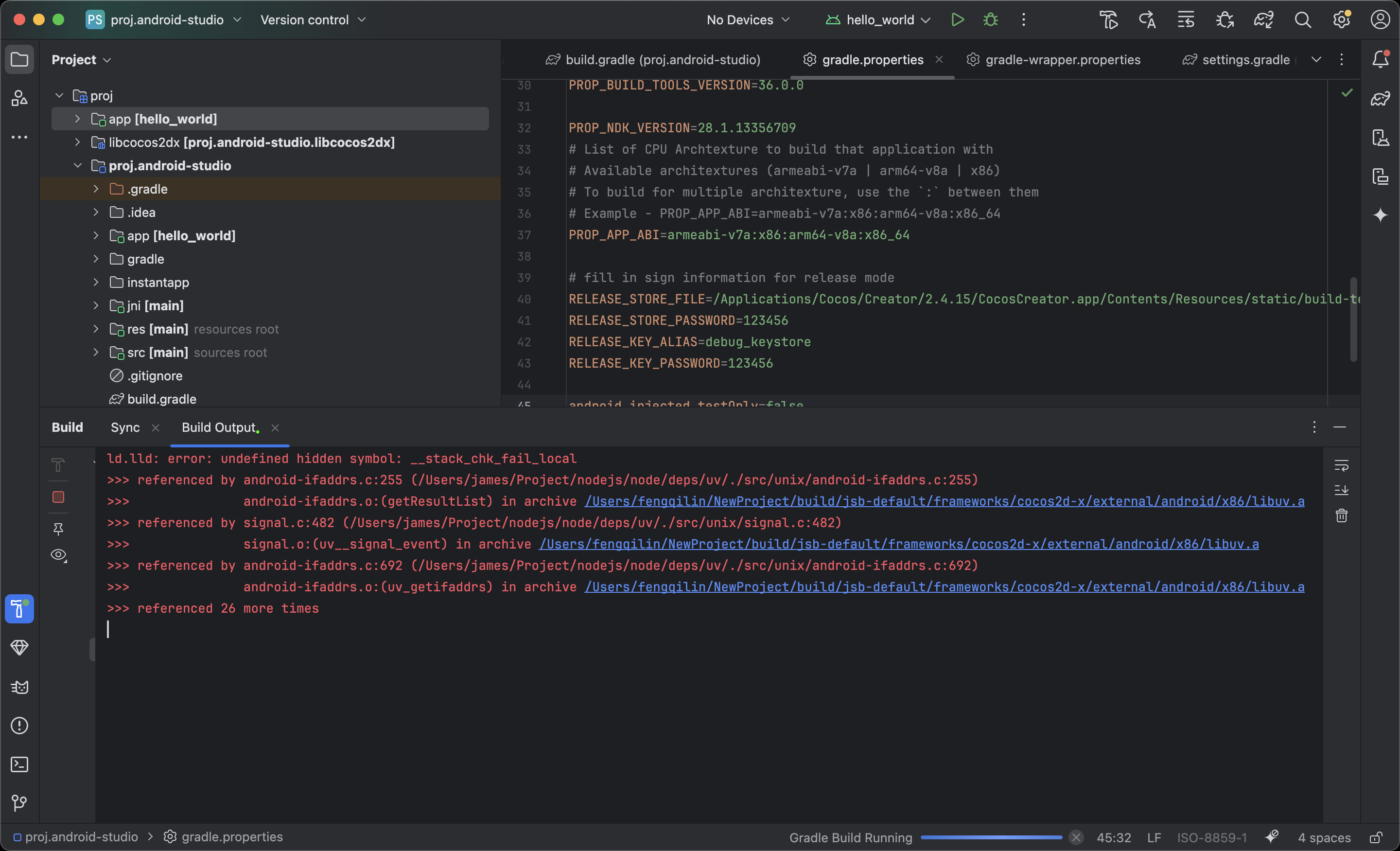 对gralde没有修改,我在尝试一下你们2.4.16版本的引擎,报错的我只是按照你们pr处理,但是如果去掉x86是可以正常的,可以确定一下你是保留了x86也正常工作的吗。在修改一下我用的是cocos 2.4.15