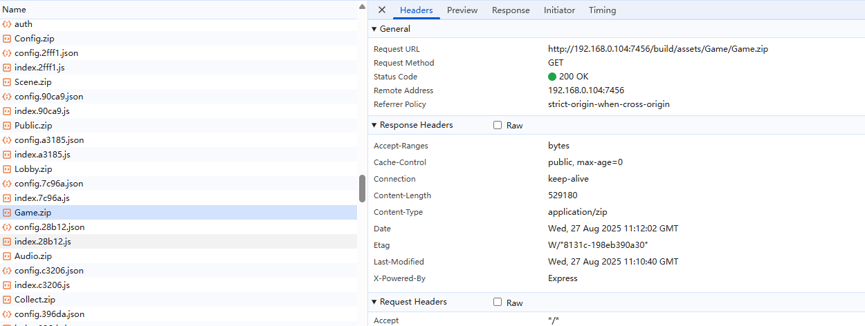 人家是index.25d86.js,你搞成 GameNameXXXX.25d86.zip,下载过去就好了.