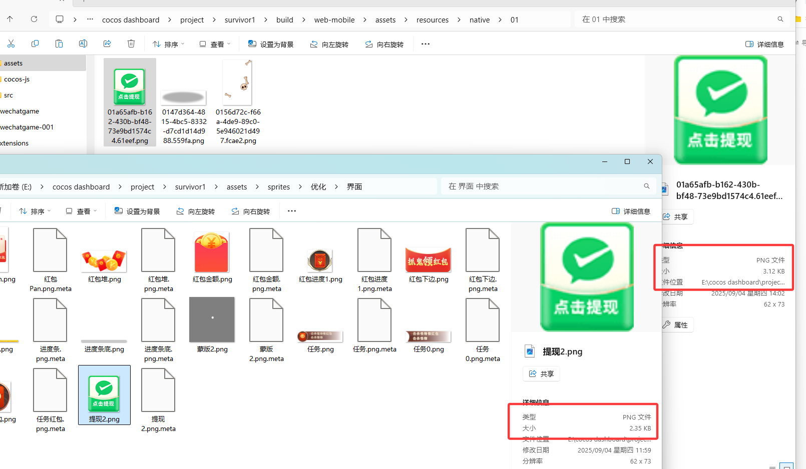 项目中所有的图片都是压缩后直接导入编辑器的,都是默认配置,没有勾选压缩纹理和消除透明伪影,打包web-mobile后查看native文件夹中的图片信息,确实是变大了。